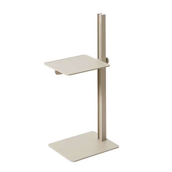 Museum Sidetable es una mesa de altura regulable en aluminio y acero.