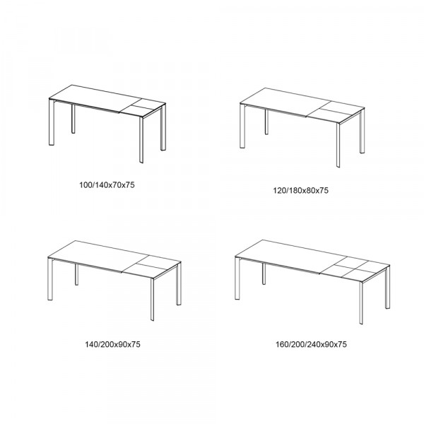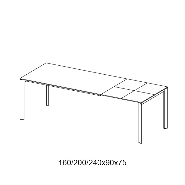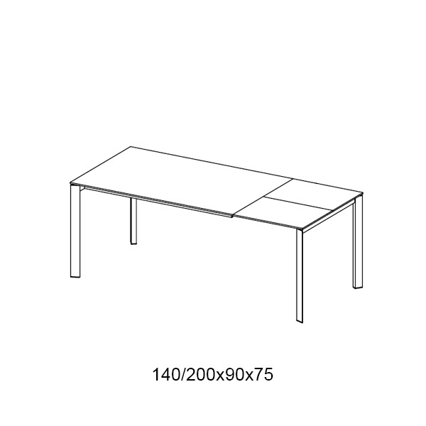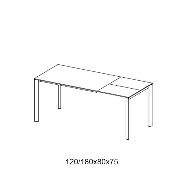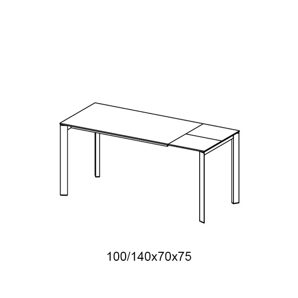 Mesa con estructura de acero y sobre de una o dos extensiones en cristal.