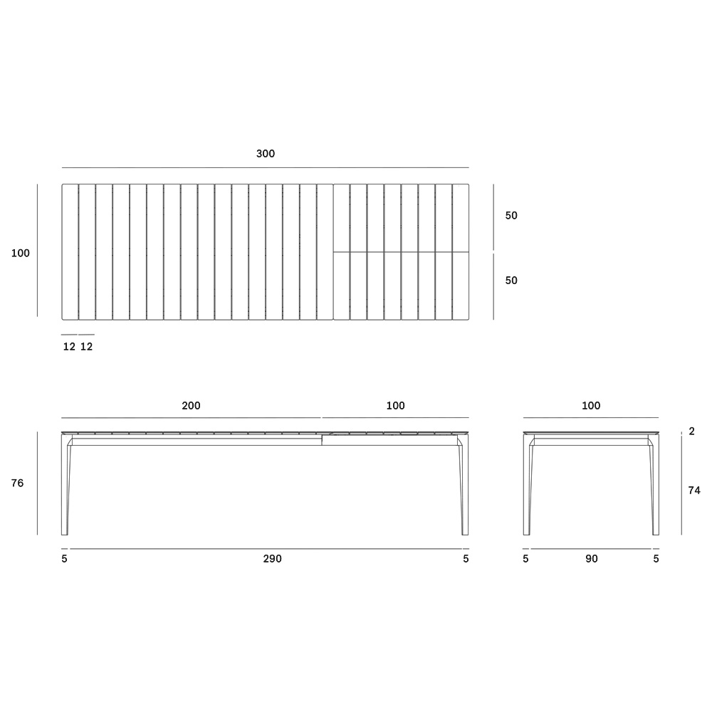 Mesa de exterior extensible con estructura de teca maciza. Dimensiones: 200/300x100x76h cm.
