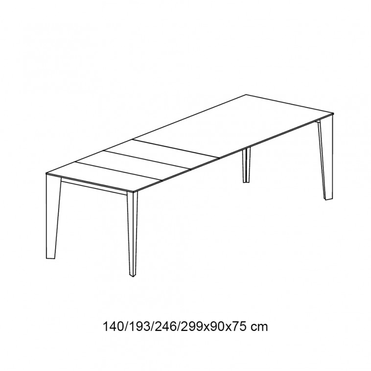 - 140x90x75h cm. Extensible a 193, 246 y 299 cm.