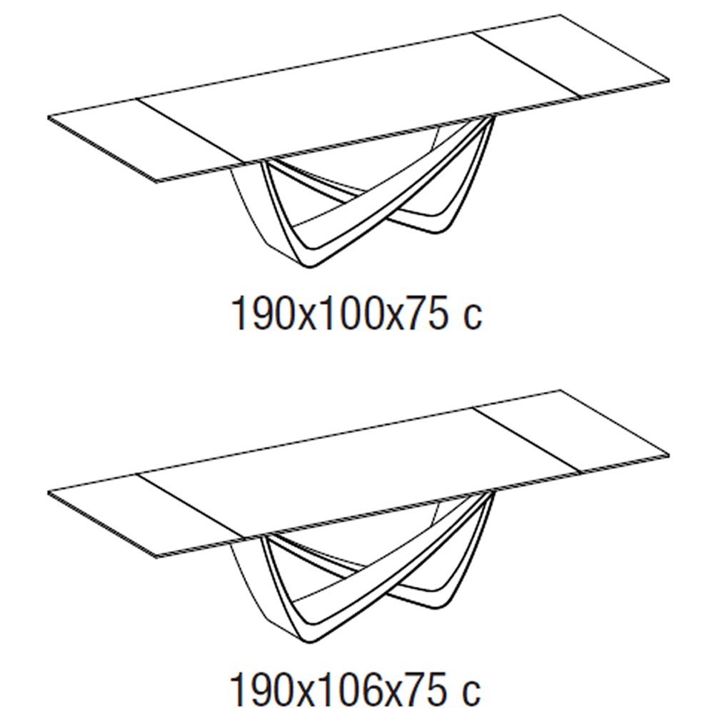 Mesa con sobre rectangular extensible en diferentes acabados. Diseño: Andrea Lucatello.