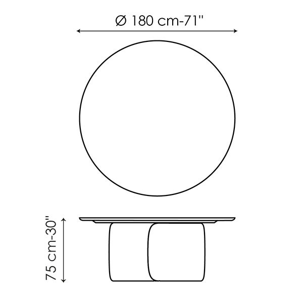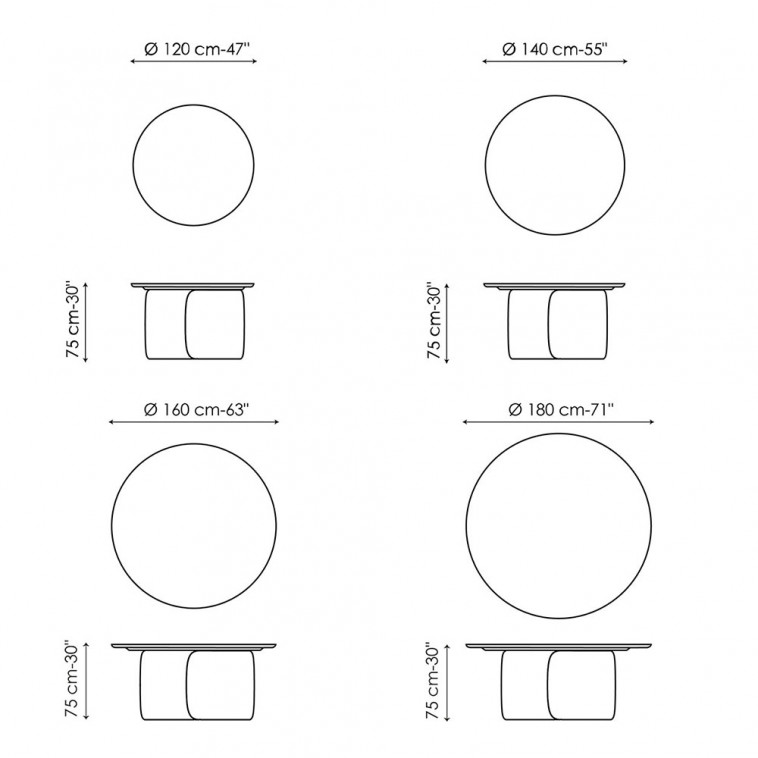 Mesa fija redonda en base de polipropileno con sobre de madera, cerámica o mármol.