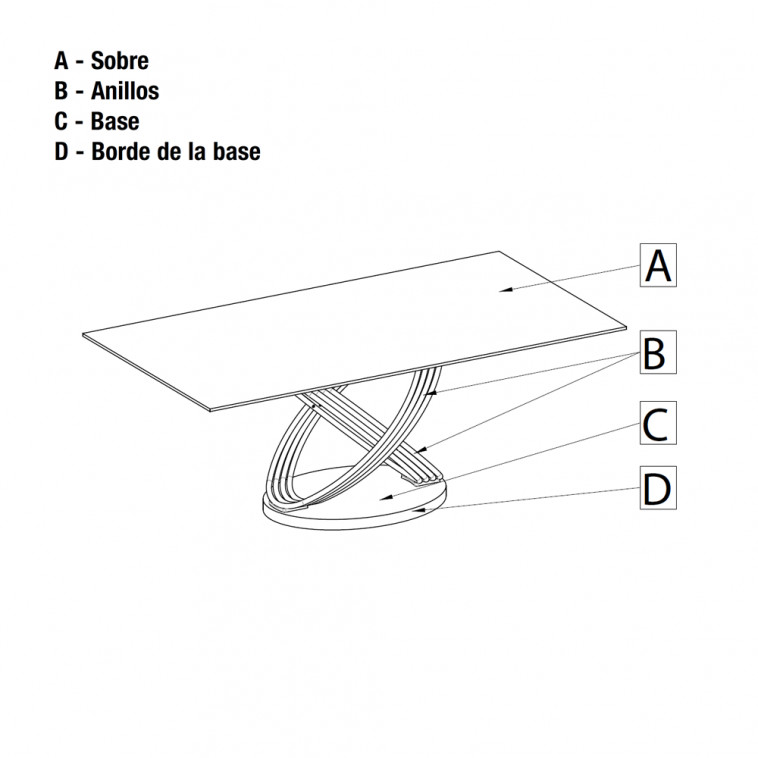 Mesa rectangular con estructura de acero lacada y sobre en superMármol.