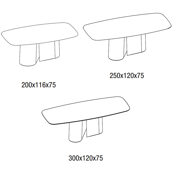 Mesa con cantos redondeados fija, con estructura de acero lacado. Tapa disponible en SuperCeramica, SuperMarble.