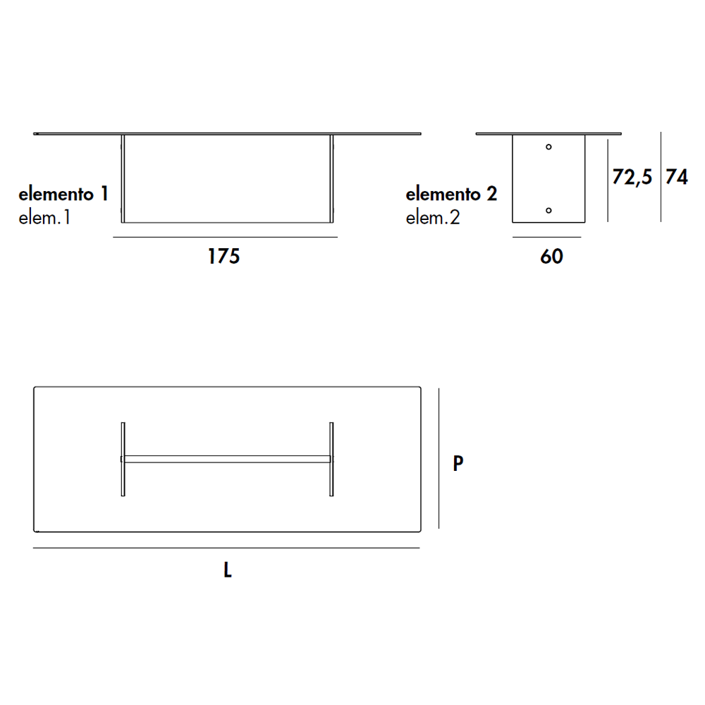• Base: compuesta por un elemento de madera en varios acabados y dos elementos de vidrio laminado lacado en negro TFN1.