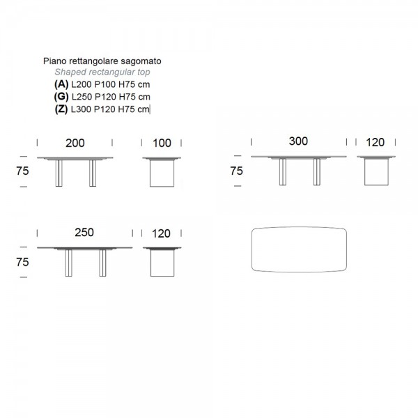 Mesa redondeada fija con tapa de cristal, mármol o cerámica.