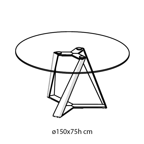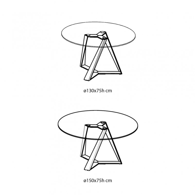 Mesa fija redonda con estructura de acero y sobre de madera, cristal o superMármol.