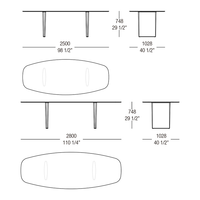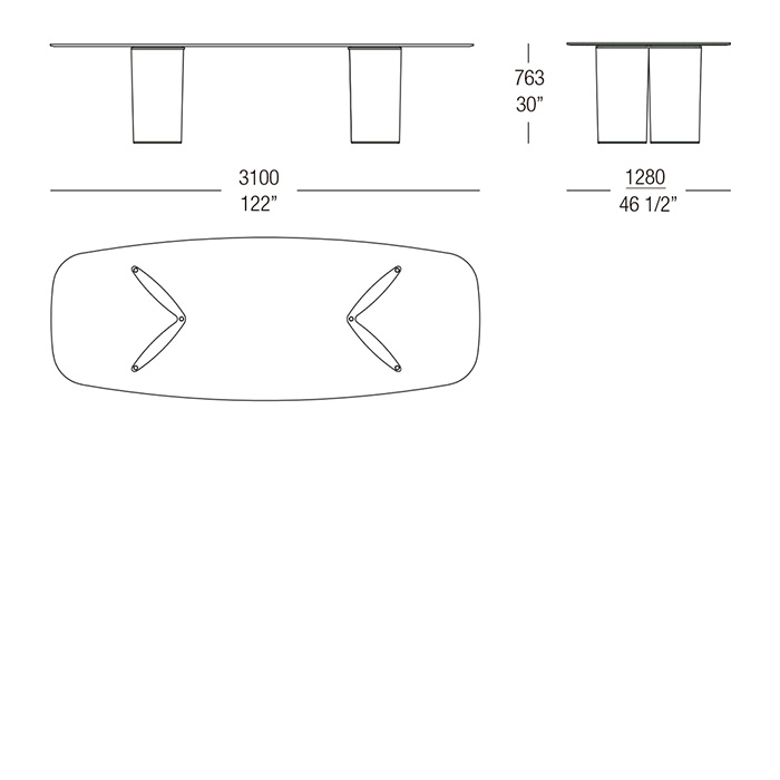 Mesa con estructura de madera y sobre de cristal semi-ovalado. Designer: F. Laviani