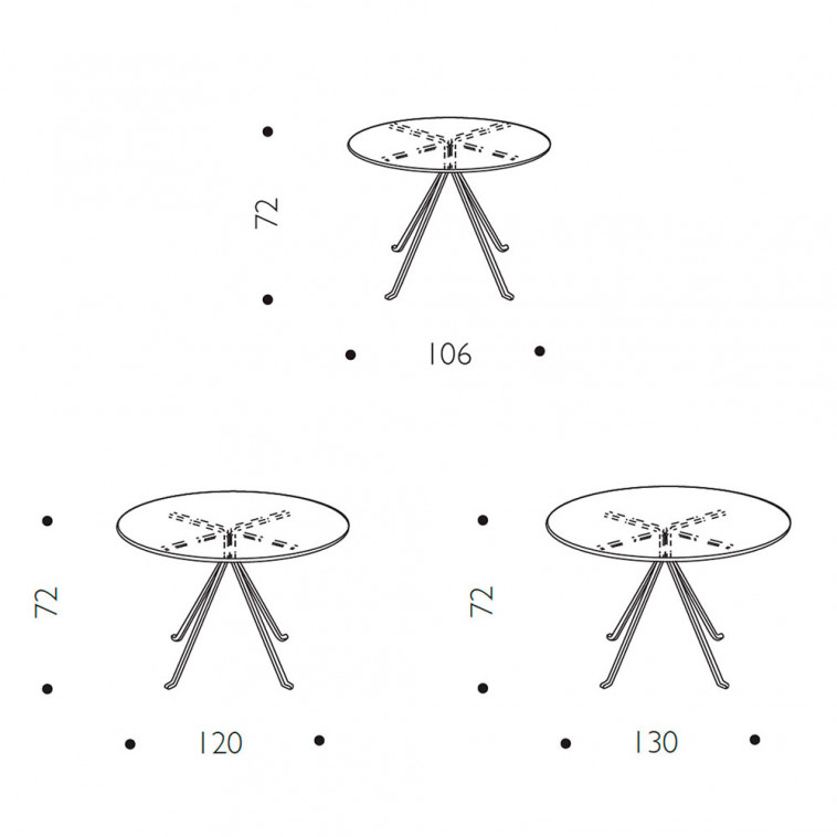 Mesa redonda en estructura de acero lacado en negro y sobre de cristal. Diseño por Enzo Mari