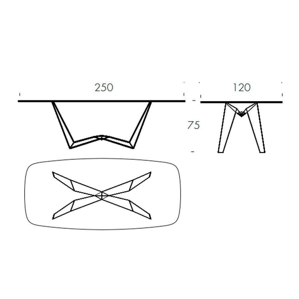 Mesa redondeada fija con tapa de cristal, madera o cerámica y base reversible.