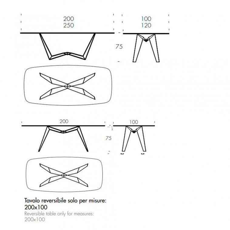 Cuenta con una base en acero pintado con tapas de cristal, madera y cerámica disponibles en diferentes acabados.