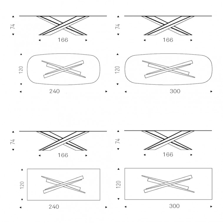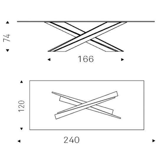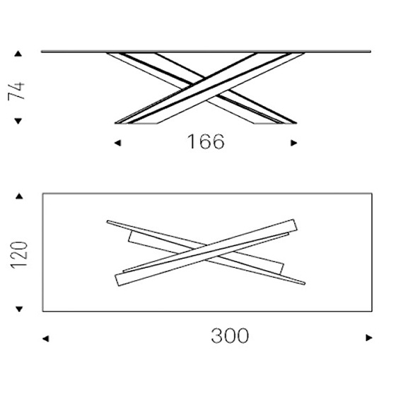 La mesa Lancer de Cattelan Italia presume de un diseño escultórico y un estilo majestuoso e inigualable. Su base de acero barnizado le agrega un fuerte valor arquitectónico, su forma está compuesta por cuatro aspas que cortan el aire y se cruzan entre sí, creando una un patrón enérgico aparentemente irreproducible. Las patas en sección en T, multiplica las posibilidades cruces y de superposición. Gracias a esto la base se ve reforzada por un interesante efecto de claroscuro, en el que las zonas ciegas contrastan con las partes donde incide la luz. El sobre está elaborado en cristal transparente, lo que permite apreciar la forma de la base en su totalidad.