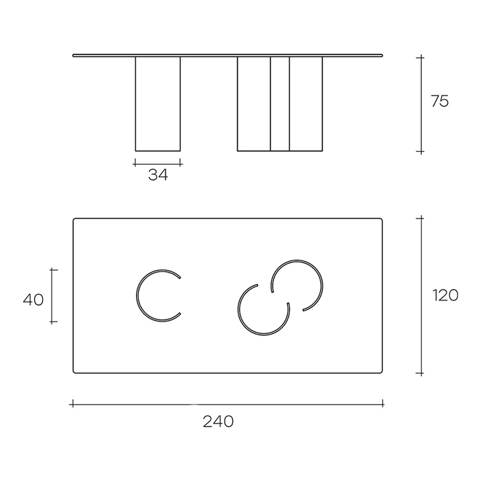 La base de la mesa está diseñada con 3 cilindros de vidrio de 10 mm (Ø 40 cm). Estos cilindros añaden un toque de originalidad y estilo contemporáneo a la mesa.
