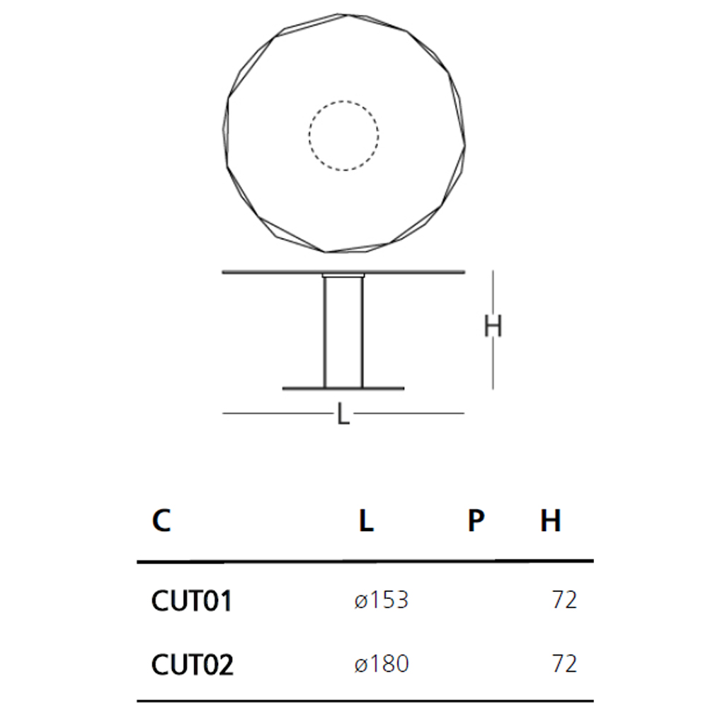 Mesa redonda con sobre de cristal extra claro con borde feceteado. Diseño de Piero Lissoni.