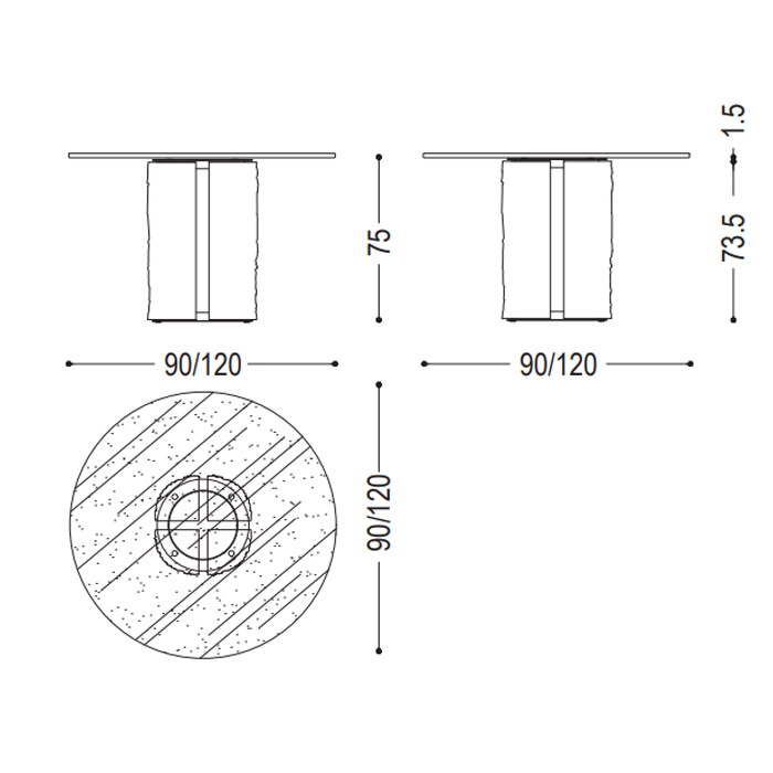Mesa redonda con tapa de cristal transparente de 1,5 cm de espesor, combinada con pata de madera maciza de Briccola.