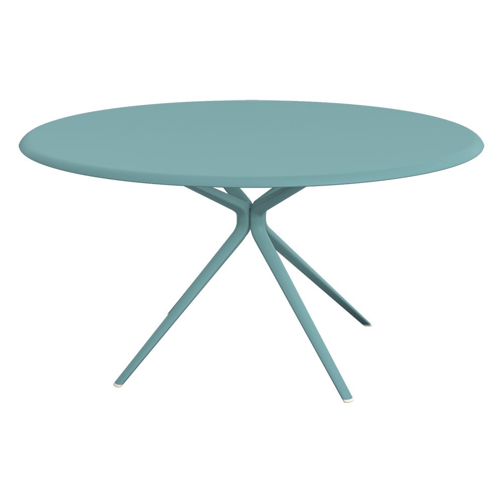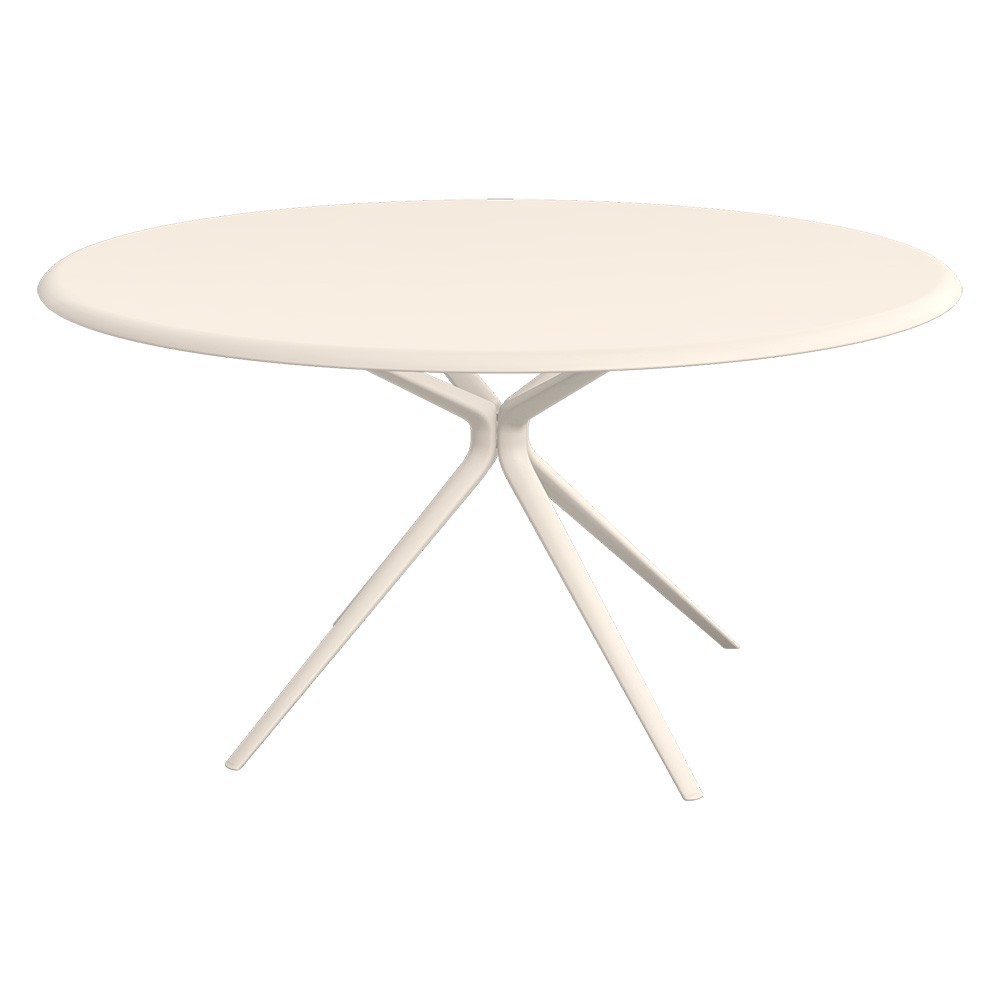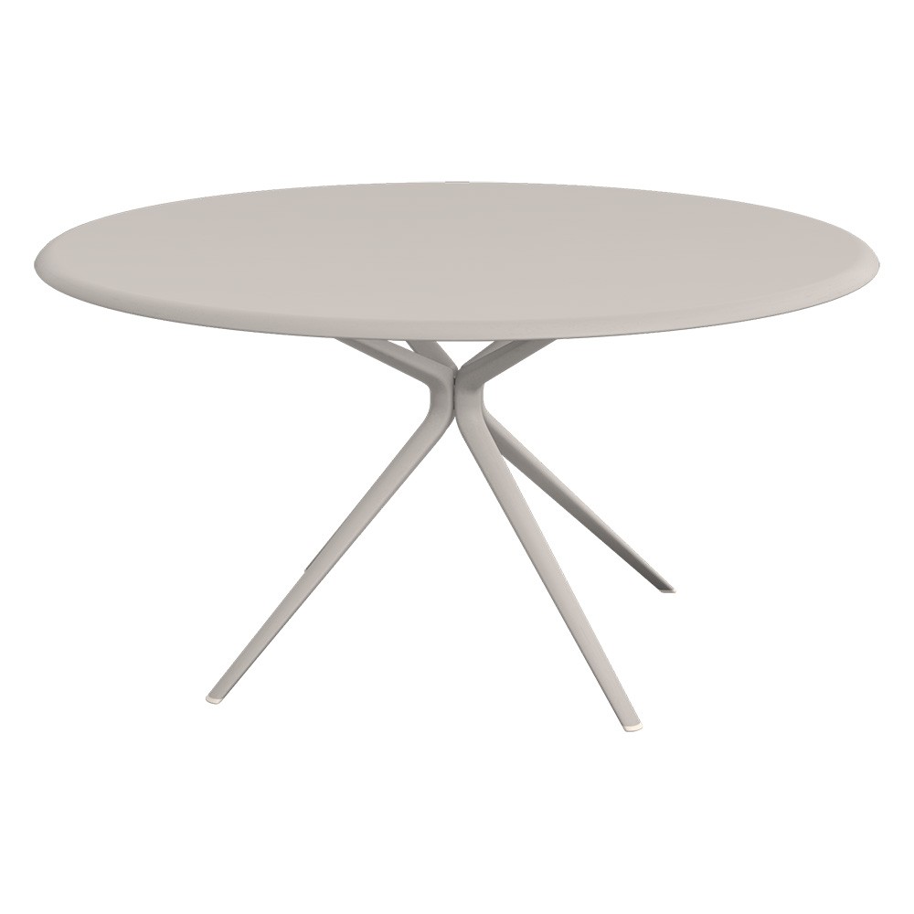 Mesa redonda con estructura y sobre de aluminio lacado.