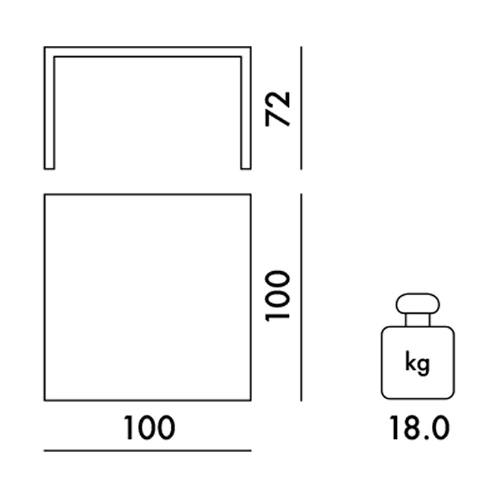 Mesa cuadrada en PMMA transparente. Dimensiones: 100x100x72h cm.
