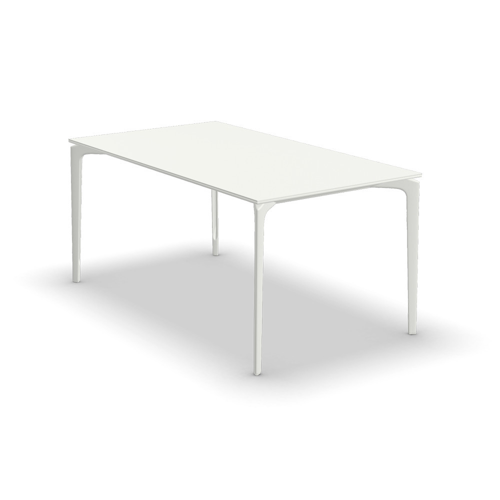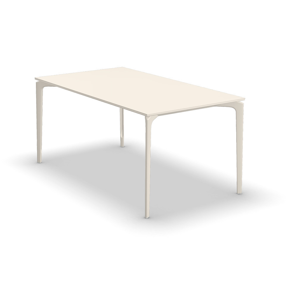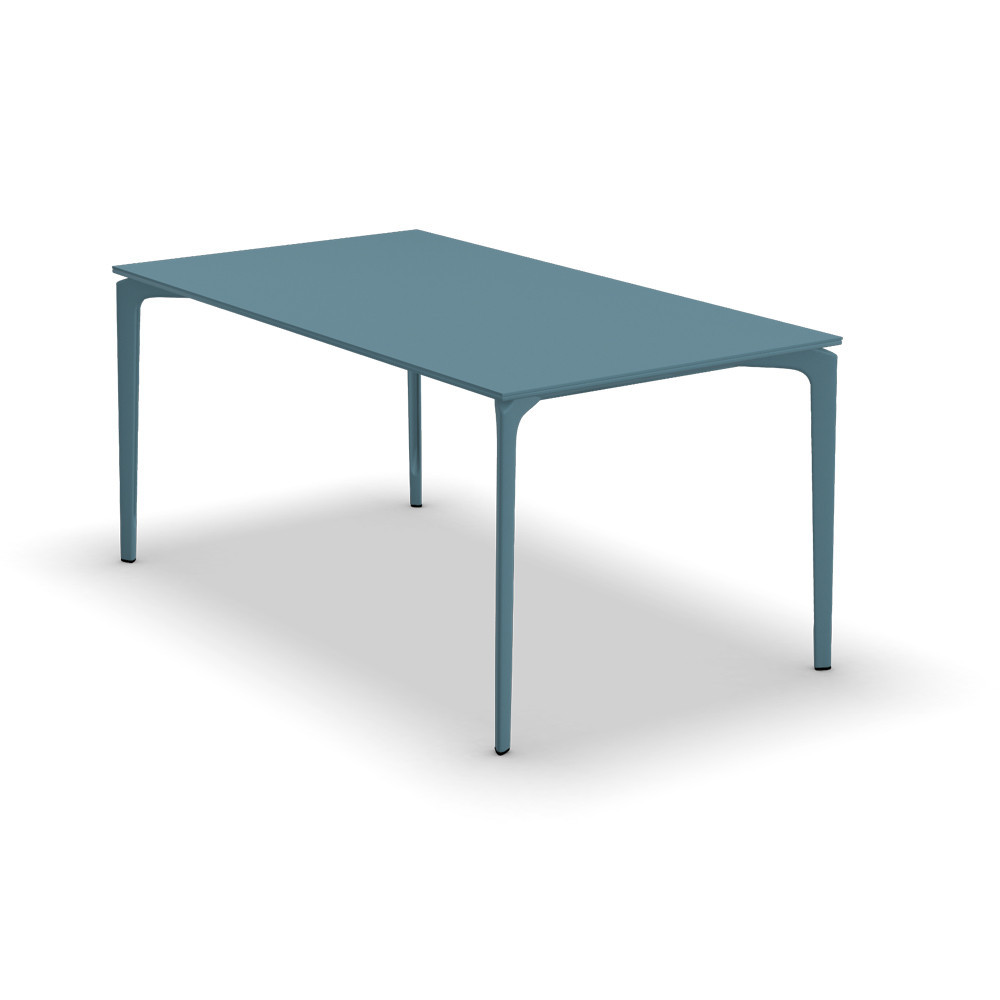 Mesa rectangular con estructura y sobre de aluminio lacado.