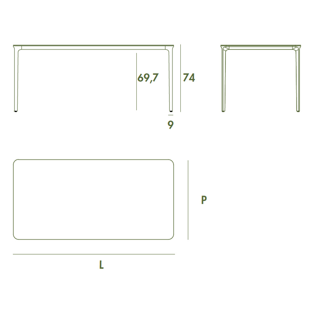 La versátil colección de mesas para exterior, Slim está reconocida por su diseño y tecnología, e introduce una nueva forma de interpretar el mobiliario de diseño para exterior, haciéndolos distintivos y funcionales gracias a su estilo minimalista y a los finos acabados ofrecidos. Su sobre rectangular está hecho de cerámica y la estructura de aluminio.