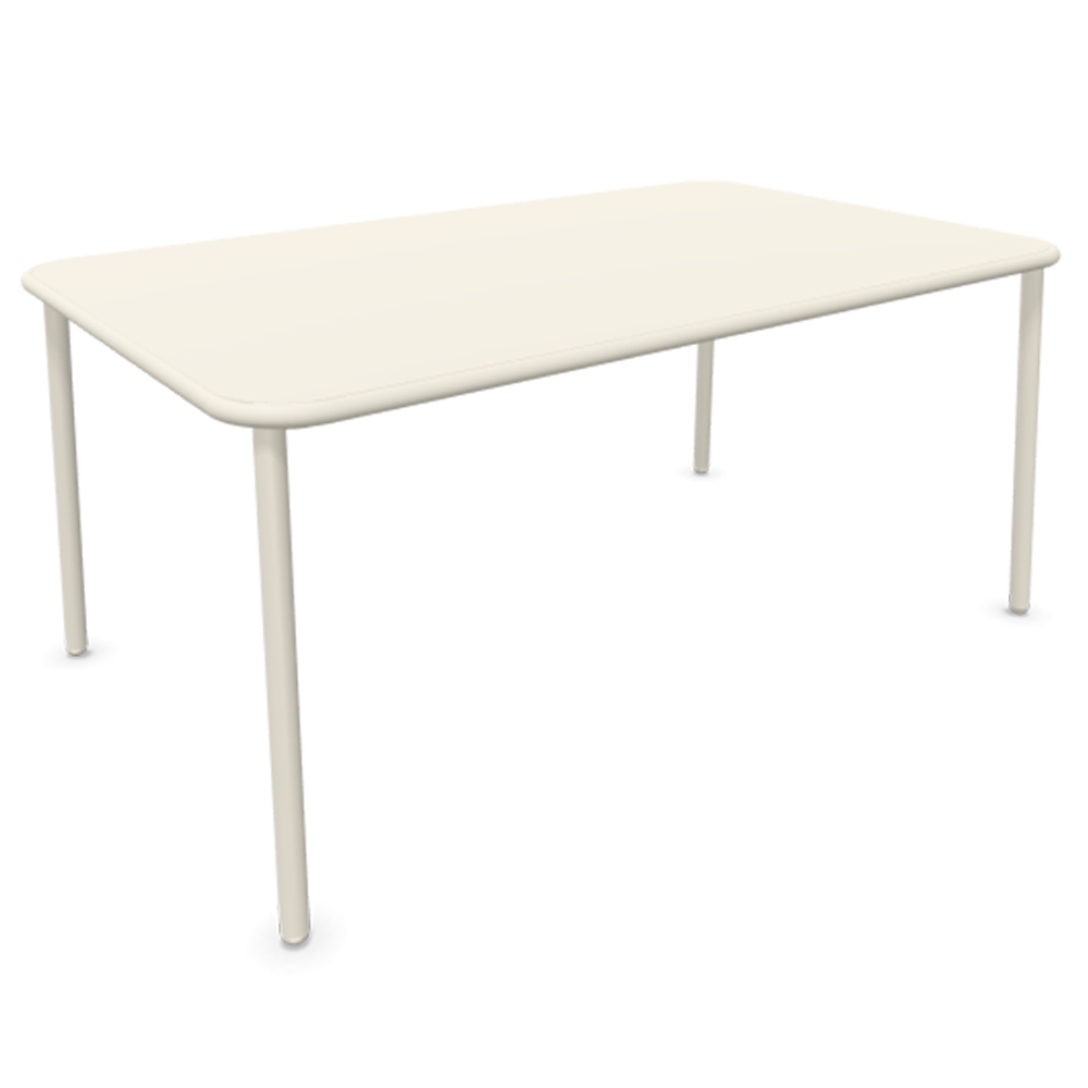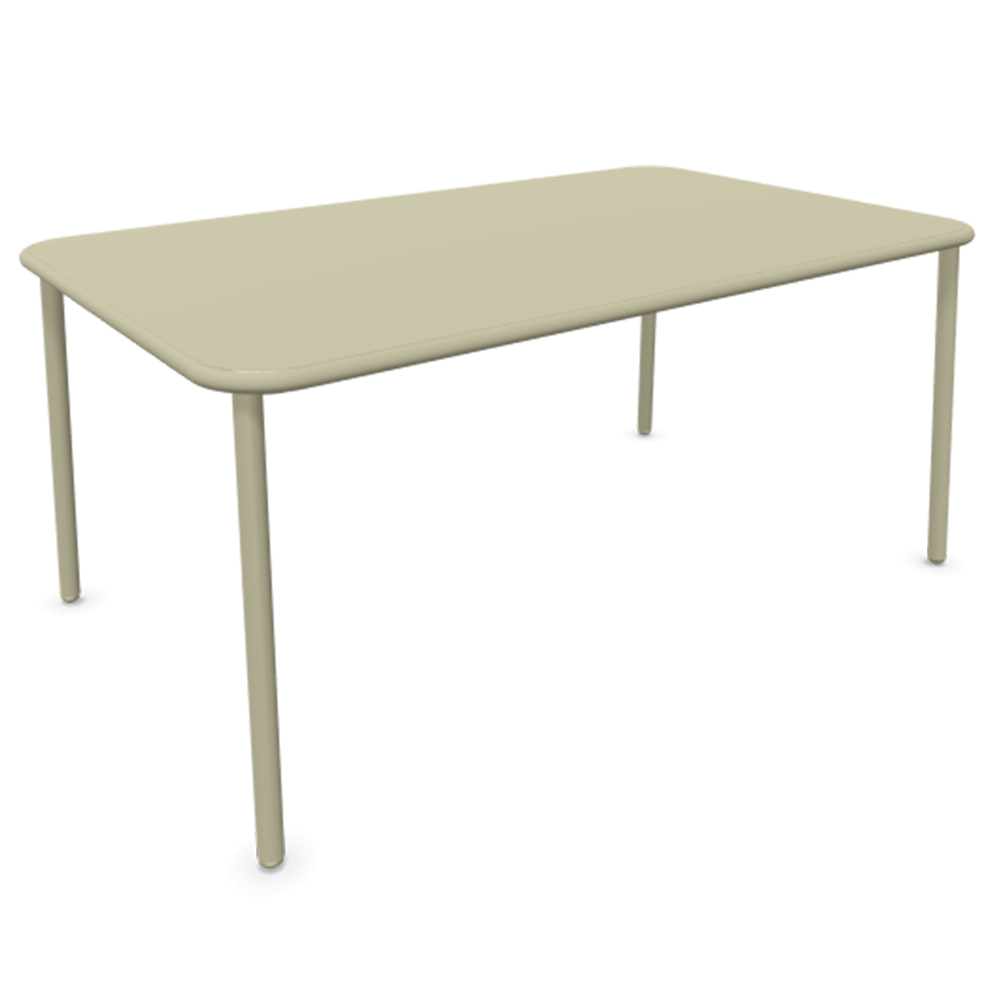 Mesa con sobre rectangular fijo de aluminio barnizado. Dimensiones: 160x97,5x74h cm