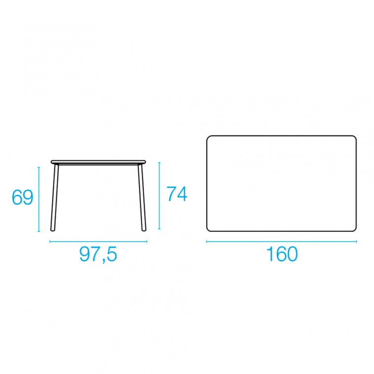 Dimensiones: 160x97,5x74h cm (para 6 personas)