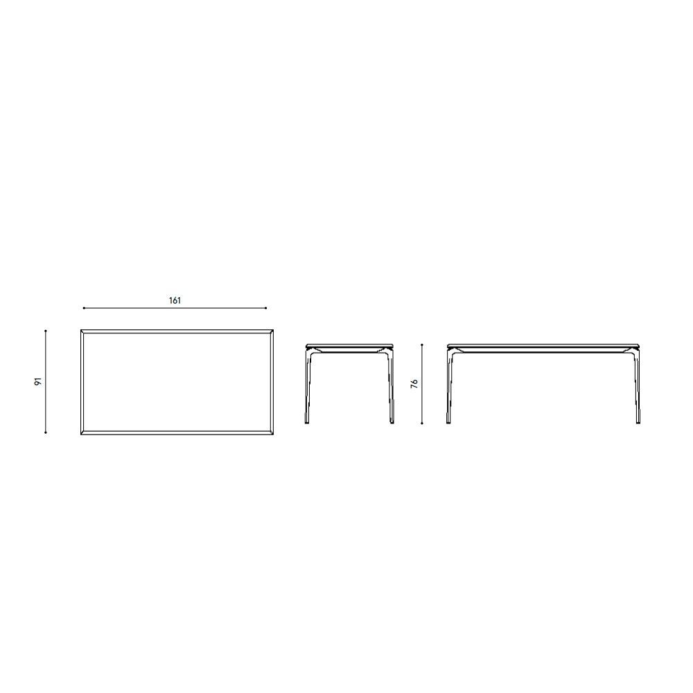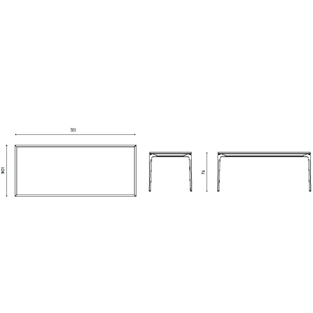 La mesa rectangular de jardín Allsize de Fast se ve resaltado por su tablero de madera iroko que descansa sobre una base de aluminio lacado, creando un interesante contraste entre sus materiales.