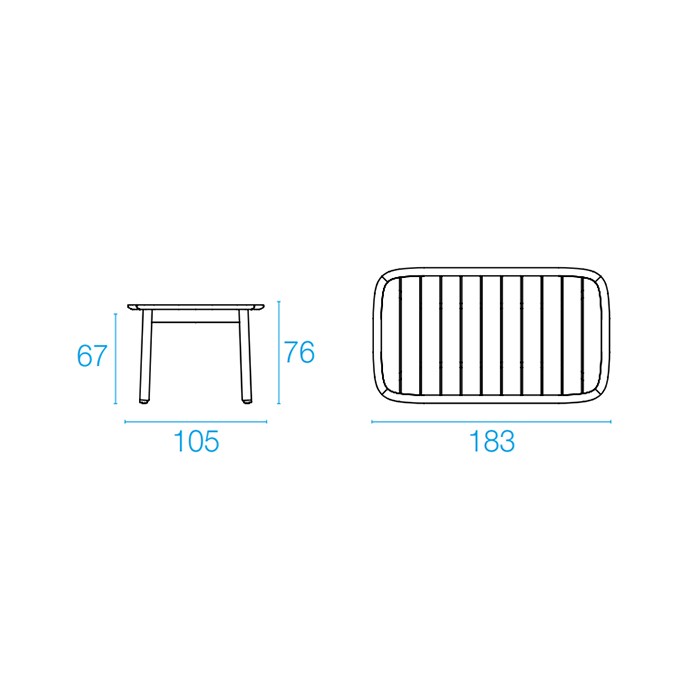 • 183x105x76h cm. (para 6/8 personas).