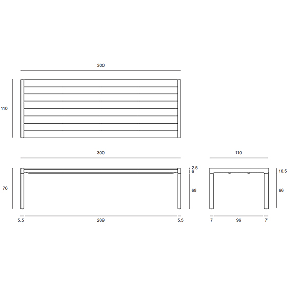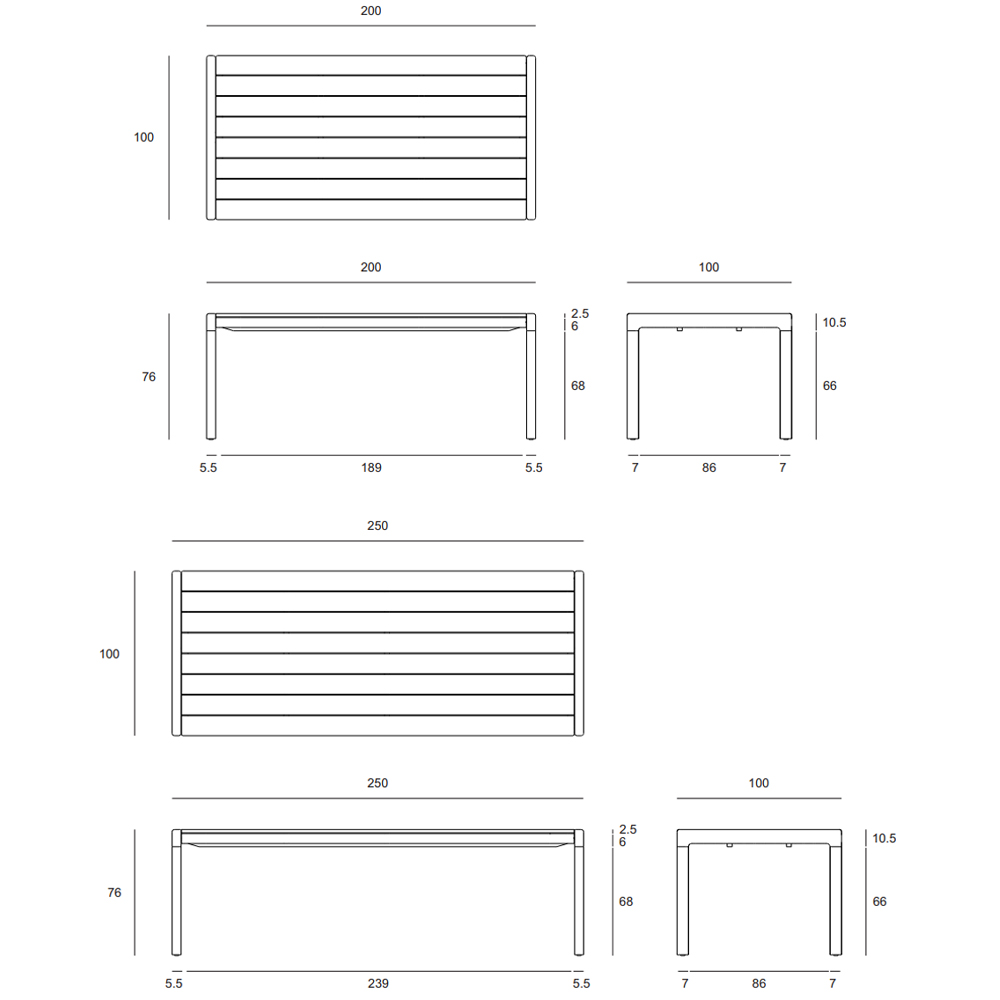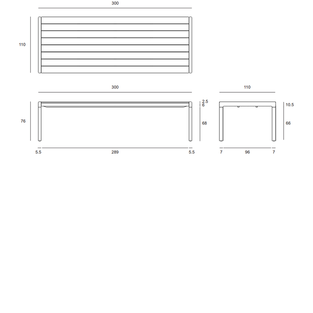 Mesa de exterior fija fabricada en teca maciza. Diseño: Jacques Deneef.