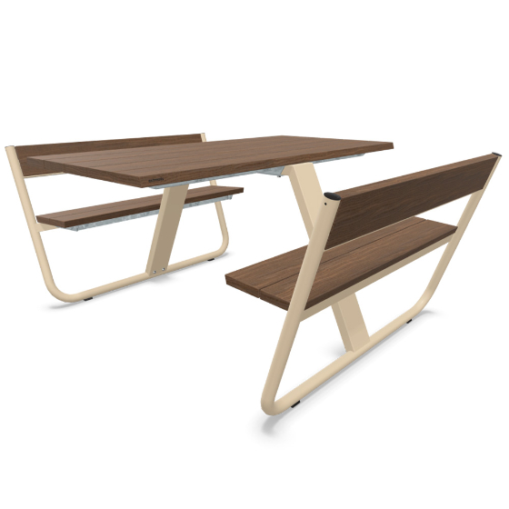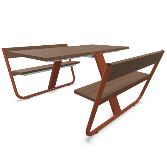 Diseñada como una mesa con formación de bancos, en esta estructura de picnic caben cómodamente hasta cuatro personas en los bancos mientras que los extremos que presiden la mesa se reservan para usuarios de sillas de ruedas. Así, Manille consigue ser una mesa inclusiva y accesible para todos, un verdadero producto tool for togetherness.