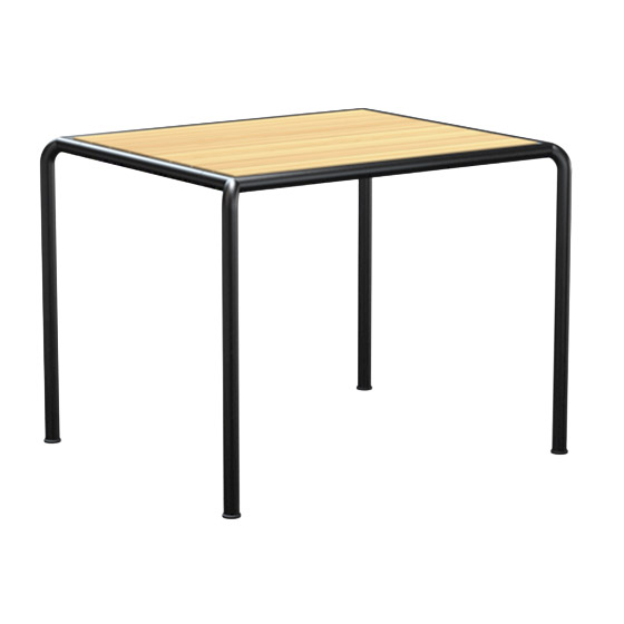 Mesa con estructura de acero y tablero de madera. Diseño por Henrik Pedersen.