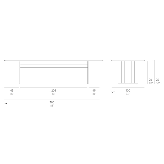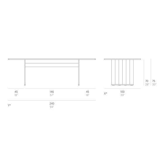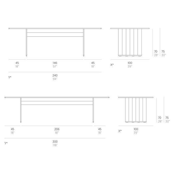 Con su distintiva pata y 240 o 300 cm de longitud, esta mesa es el punto de encuentro ideal para compartir comidas, charlas o usarla como barra, y su diseño modular permite crear configuraciones personalizadas y versátiles en cualquier entorno.