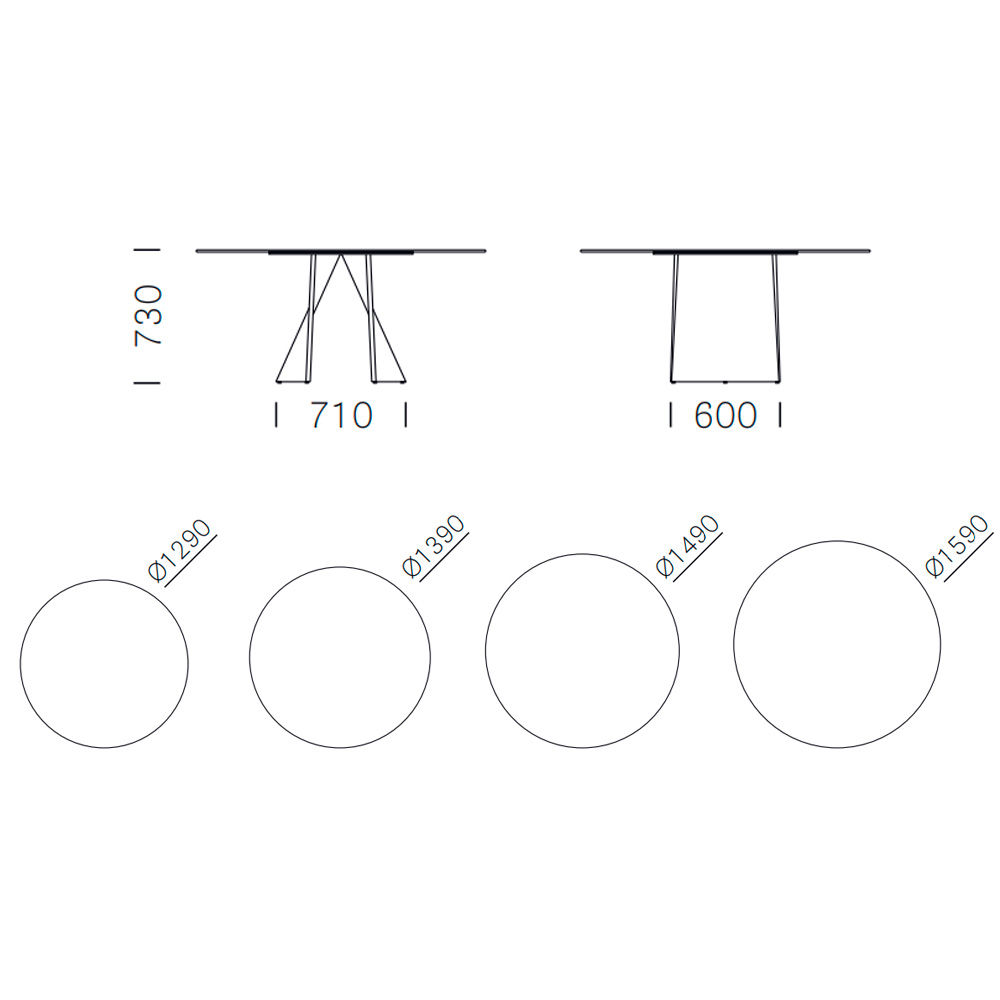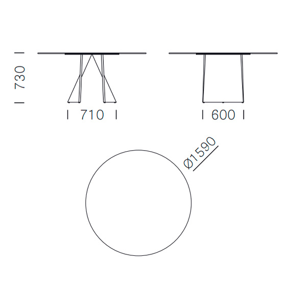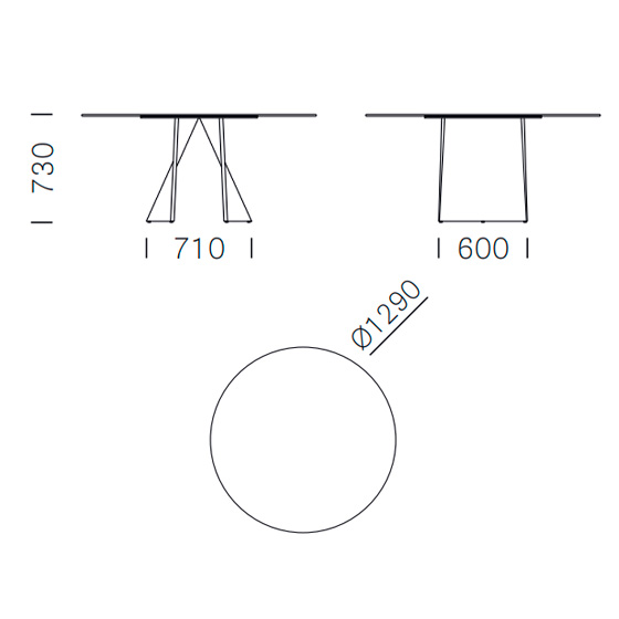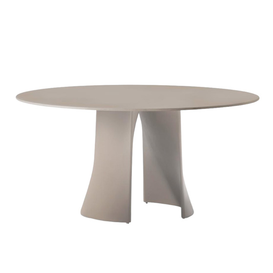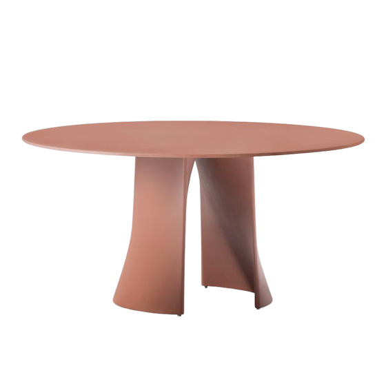 Una mesa visualmente ligera, pero al mismo tiempo firme y resistente, capaz de soportar tableros redondos de gran formato.