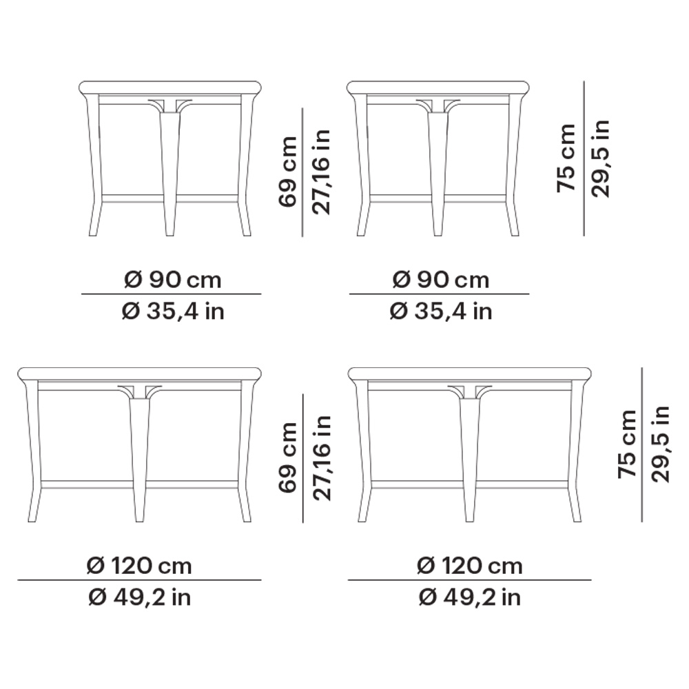 Mesa de exterior redonda con acabado fibra sintética SHINTOTEX. Diseño por Alfonso Gallego.