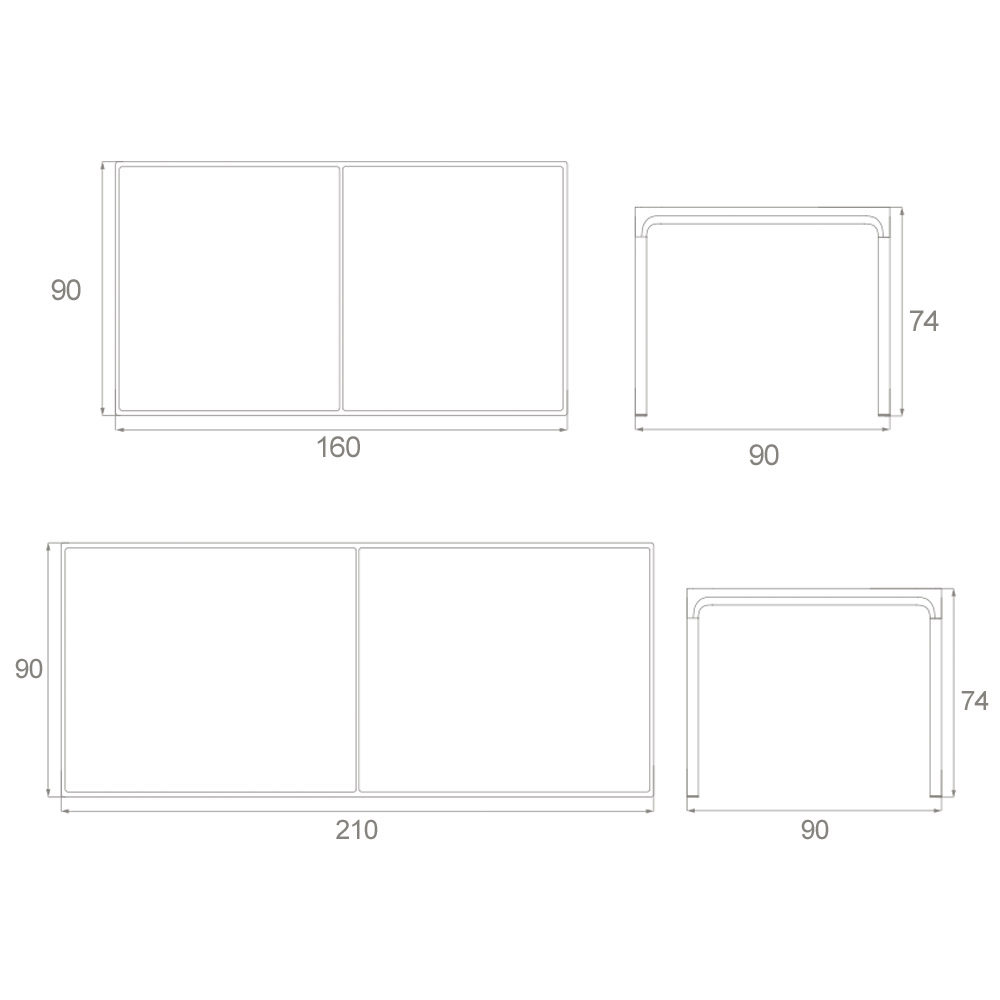 • 210x90x74h cm. (Capacidad para 8 personas)