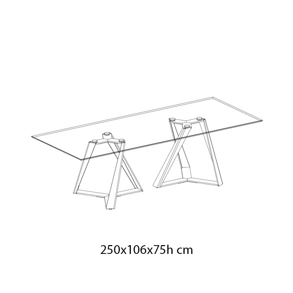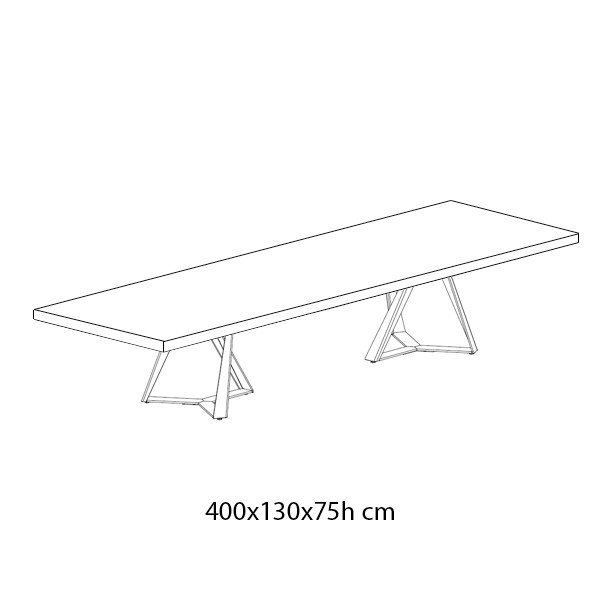 Mesa rectangular con estructura en acero y sobre de madera, cristal o superMármol.