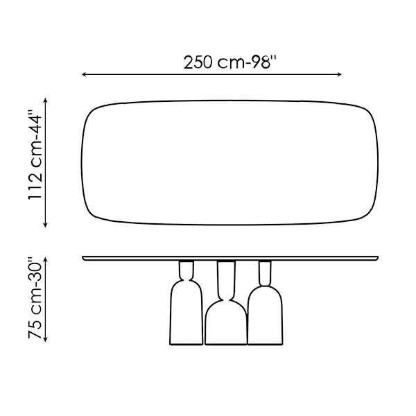 El sobre es el elemento neutral pero al mismo tiempo la línea divisoria de un mundo que se refleja. Líneas plásticas e investigación formal cuidadosa para una mesa destinada a unir personas e ideas.