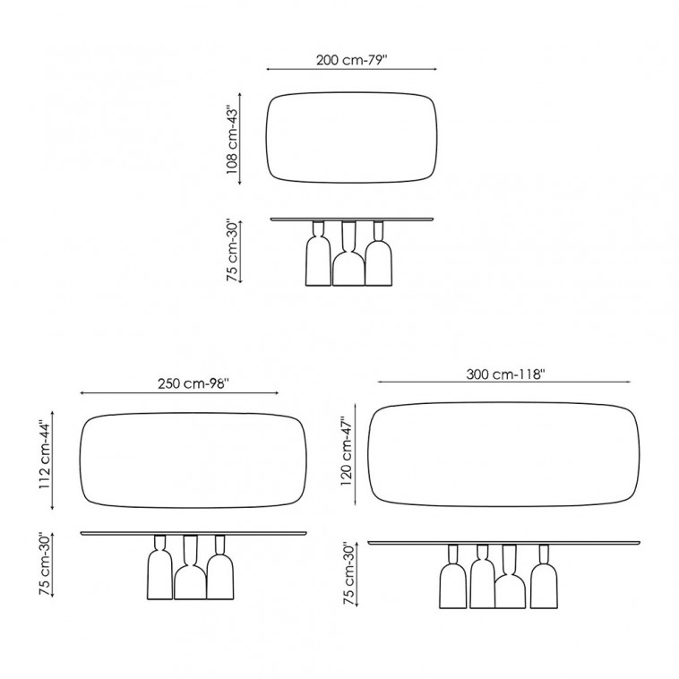 Elementos estilizados inspirados en botellas, cálices preciosos y copas de champán, en varias formas y tamaños e inmediatamente reconocibles, incluso en su posición inusual.