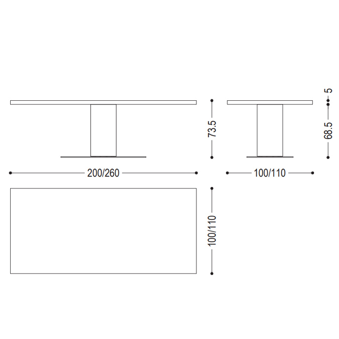 Mesa realizada íntegramente en madera maciza, con 1 pie central compuesto por listones encolados y vacía por dentro, sobre una base de hierro natural con laca transparente.