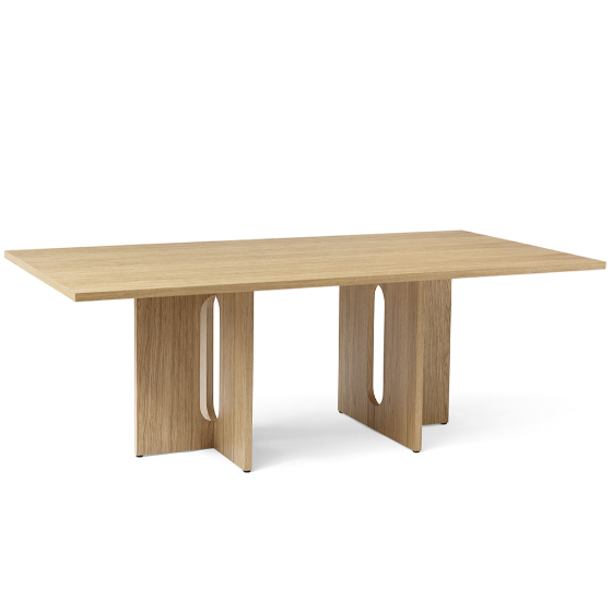 La mesa de comedor Androgyne se distingue por su silueta rectangular, alegre pero elegante y su uso de naturales.