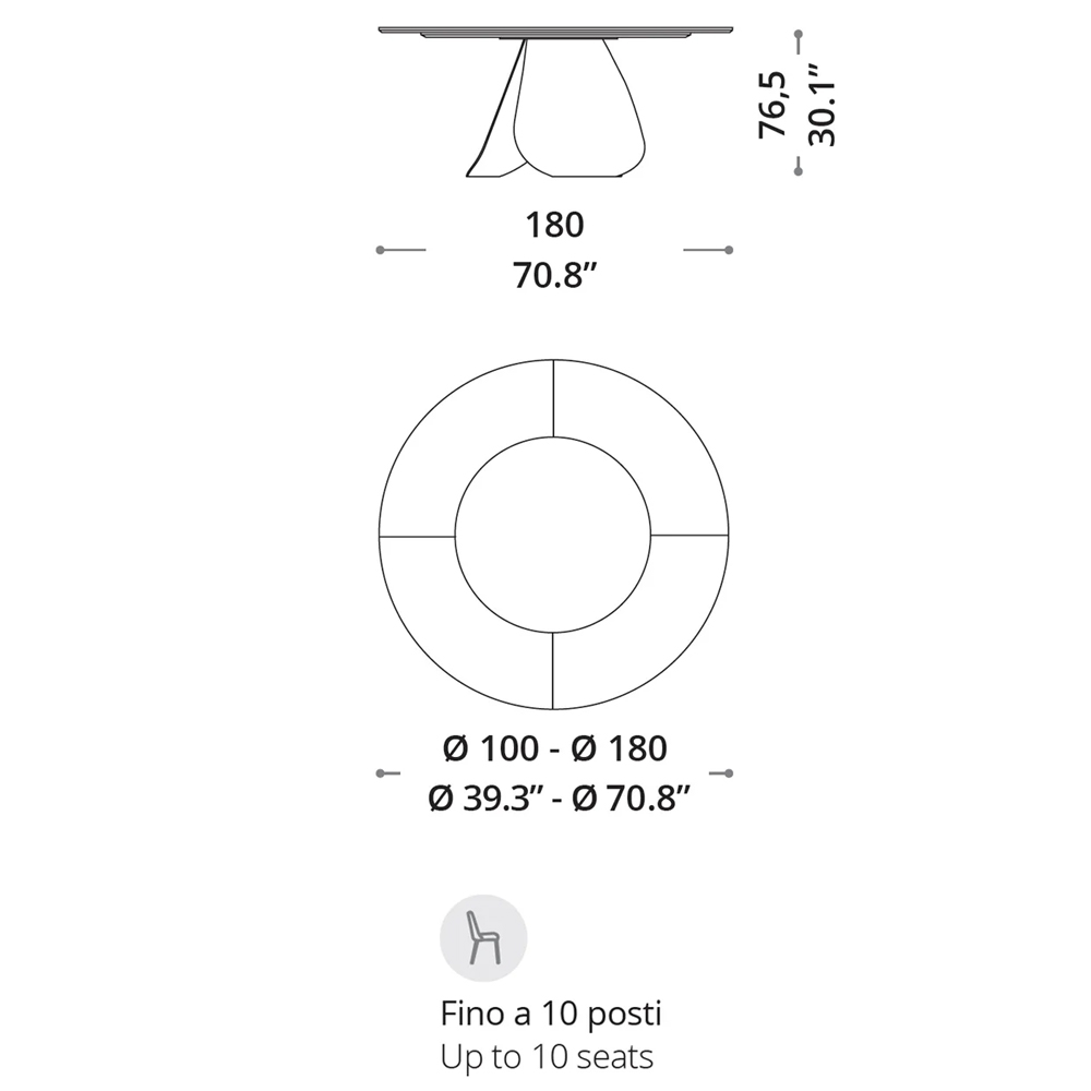 • Ø180x76,5h cm. con bandeja giratoria de Ø100 cm (10 asientos cómodos)