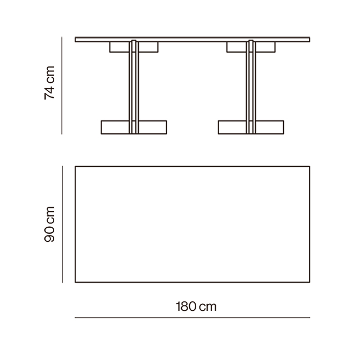 El cuidado por el detalle refuerza su lenguaje. Los travesaños, visibles en la unión entre estructura y tapa, así como en la base, aportan firmeza y equilibrio. El espacio entre los costados verticales y el travesaño genera un sutil juego de planos y vacíos que aligera visualmente la pieza.