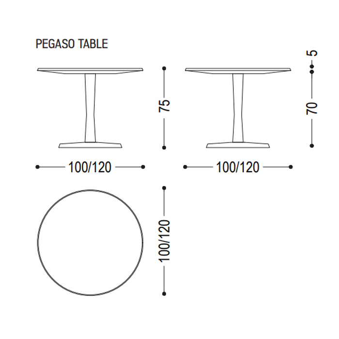 Mesa redonda realizada en madera maciza con sobre pantógrafo y pata torneada.