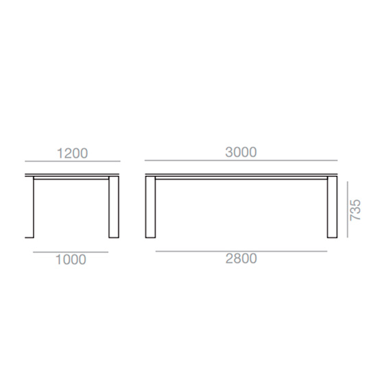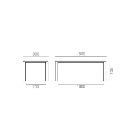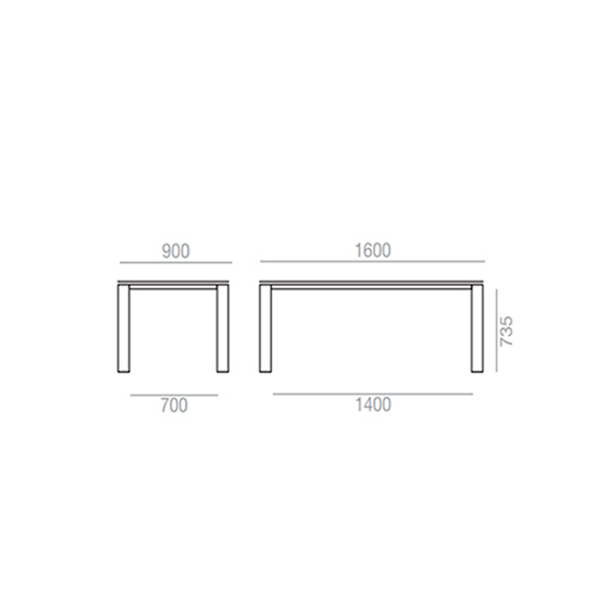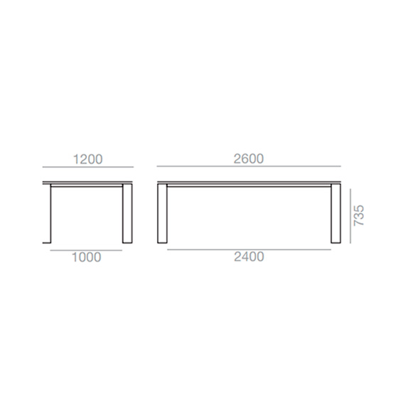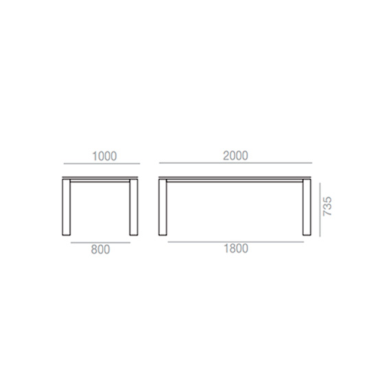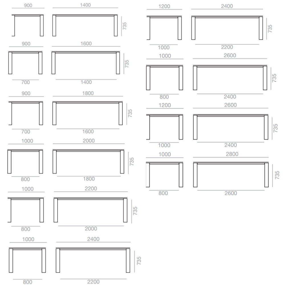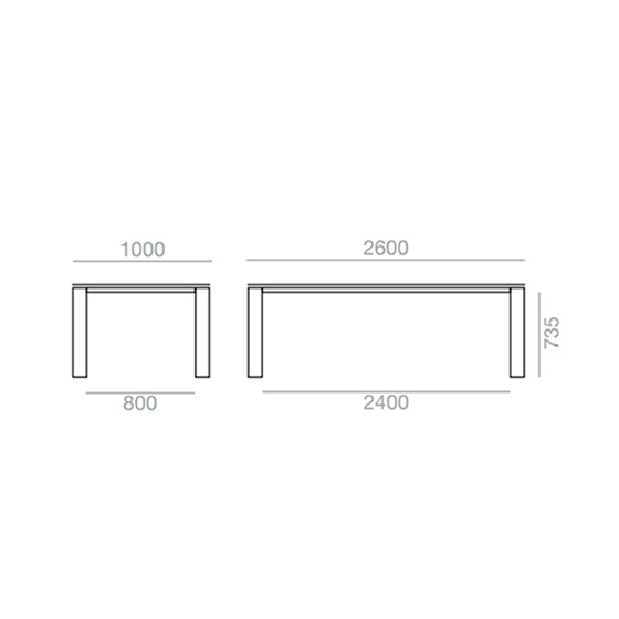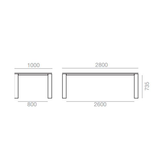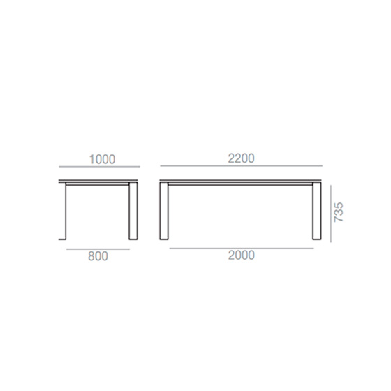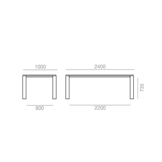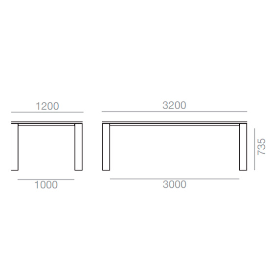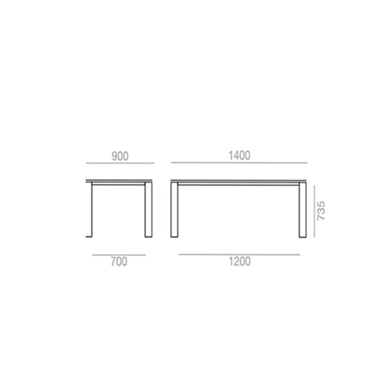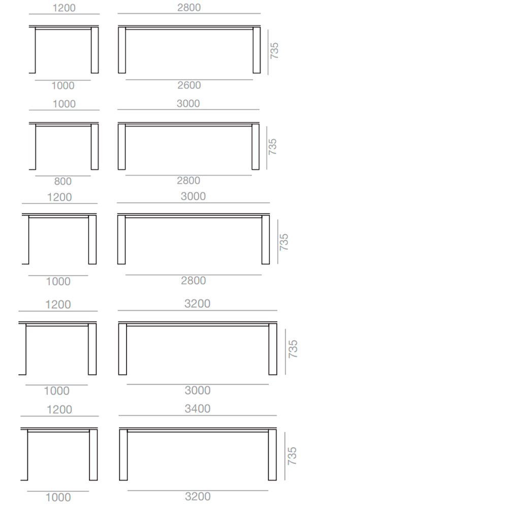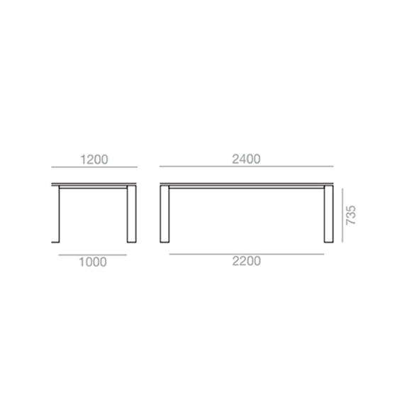 El perfil arquitectónico de la mesa de comedor Extra y su novedosa propuesta estructural la transforman en un sistema de mesas versátil.