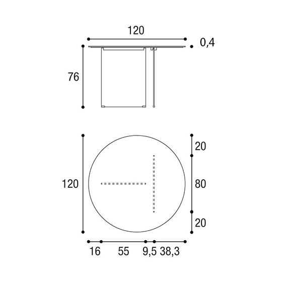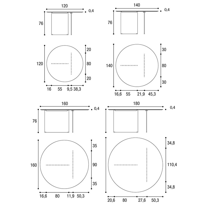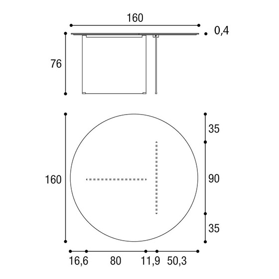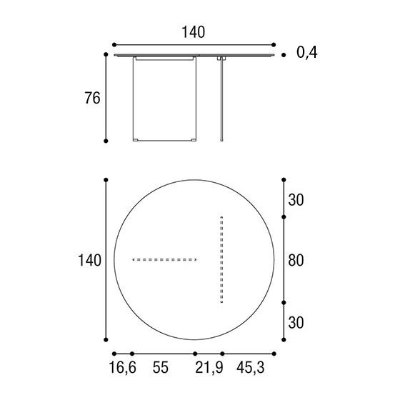 Mesa con tablero redondo slim de Wildwood y patas de cristal. Diseño por Daniele Lago