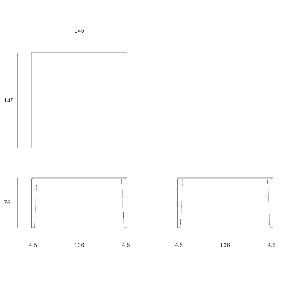 Mesa cuadrada fija de madera maciza de roble. Dimensiones: 145x145x76h cm