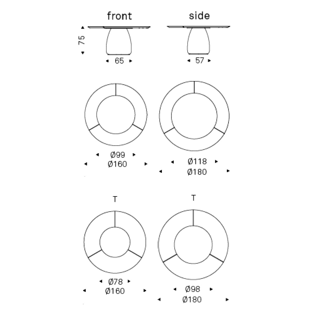 La Mesa Botero Ker-Wood Round de Cattelan Italia es una mesa redonda de comedor con base central, perteneciente a la colección Botero, definida por una base de gran volumen y geometría continua, desarrollada a partir de líneas suaves y superficies redondeadas que concentran el protagonismo del diseño en un único apoyo central.