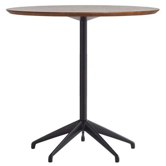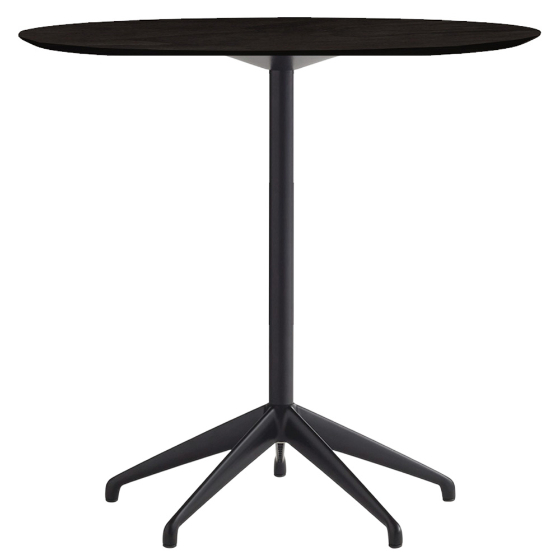 Se trata de una mesa esbelta y ligera, con un pie de aluminio en forma de estrella.
