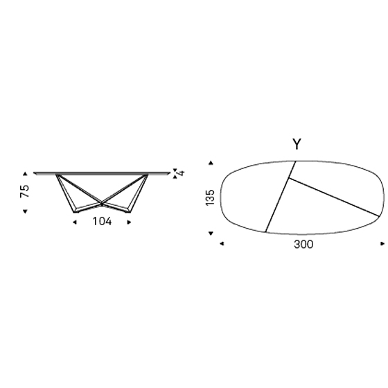 Mesa con base de metal y sobre madera. Diseño de P. Cattelan y A. Lucatello.