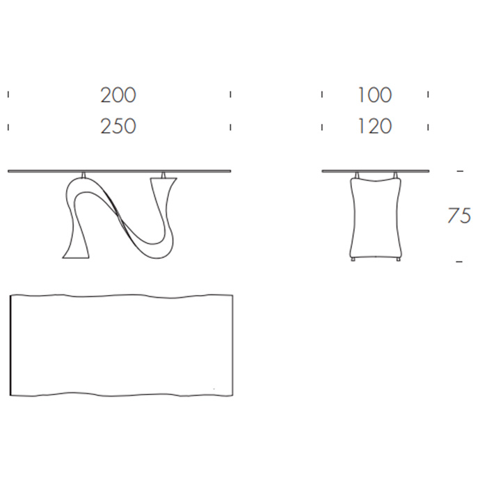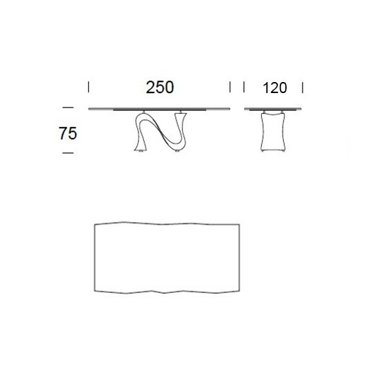 Como contrapunto, se hizo que la superficie de esta mesa moderna pareciera lo más estática posible, una línea para calmar y redefinir la ola.
