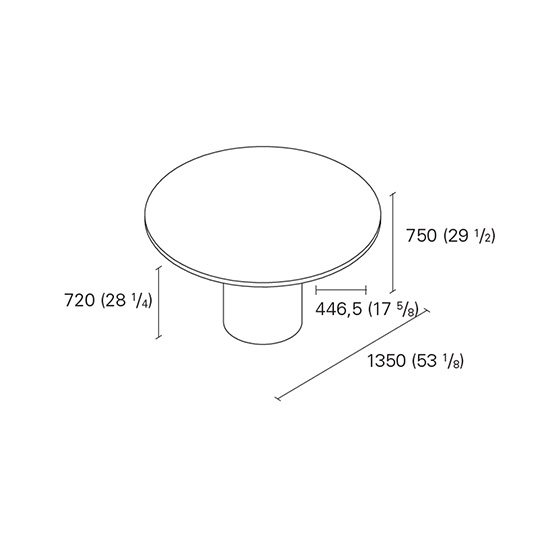 Mesa redonda con sobre de mármol y base de acero. Diseño de Phillip Mainzer.